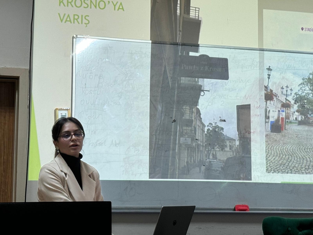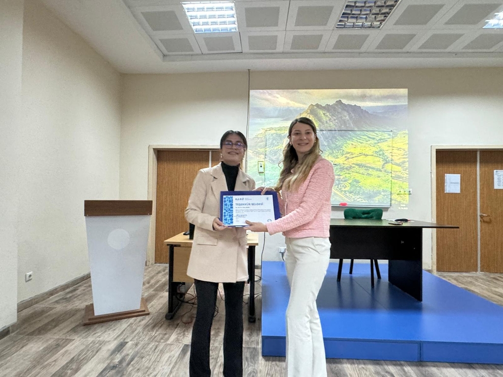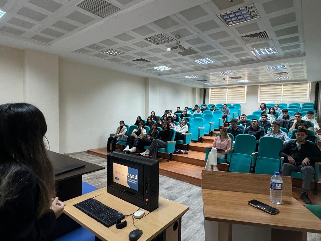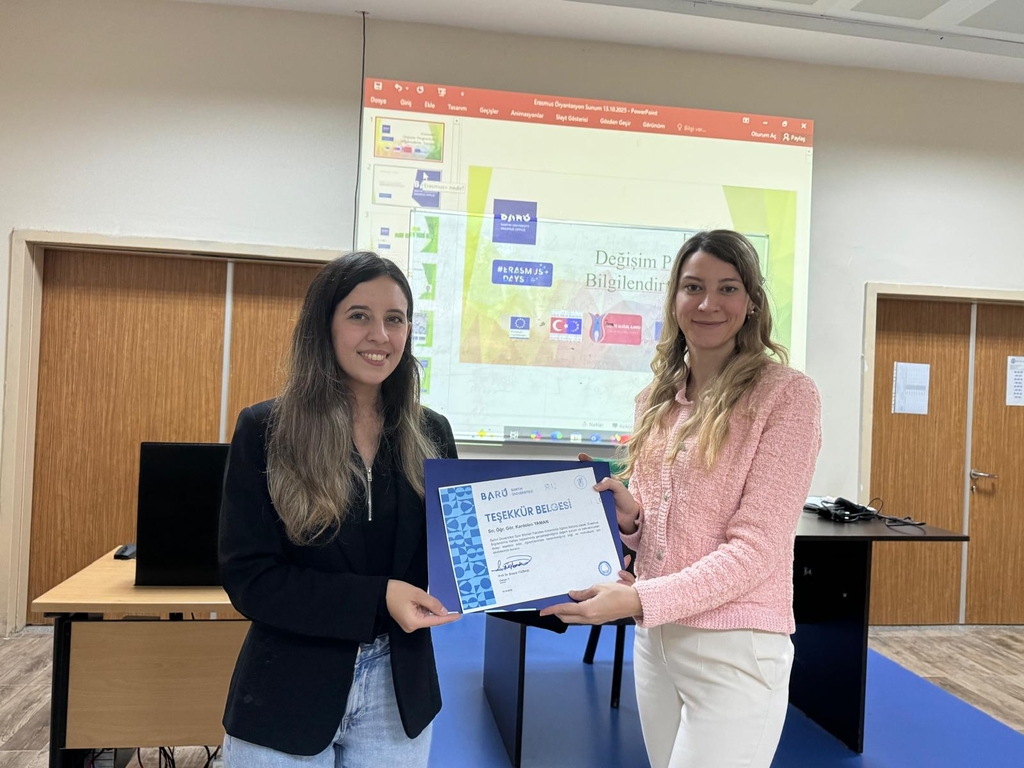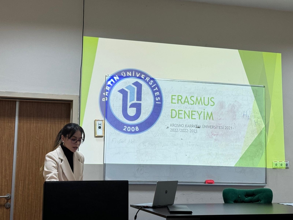 Erasmus+ programı hakkında sunum yapılan toplantıda, başvuru süreci, gerekli belgeler, seçim kriterleri, hibe olanakları ve gidilebilecek üniversiteler hakkında detaylı bilgi verildi.