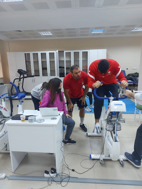 Milli sporcu öğrencilerimizin performans ölçümleri; Antrenörlük Eğitimi Bölümü öğretim elemanları tarafından yüksek lisans ve lisans düzeyinde öğrencilerin de katılımı ile Spor Bilimleri Fakültesi Egzersiz ve Fizyoloji Laboratuvarı'nda gerçekleştirildi.